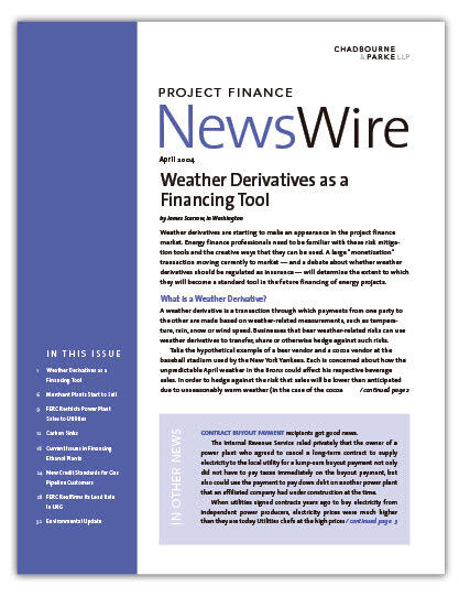 IN THIS ISSUE Weather Derivatives as a Financing Tool Weather derivatives are starting to make an appearance in the project finance market... Merchant Plan