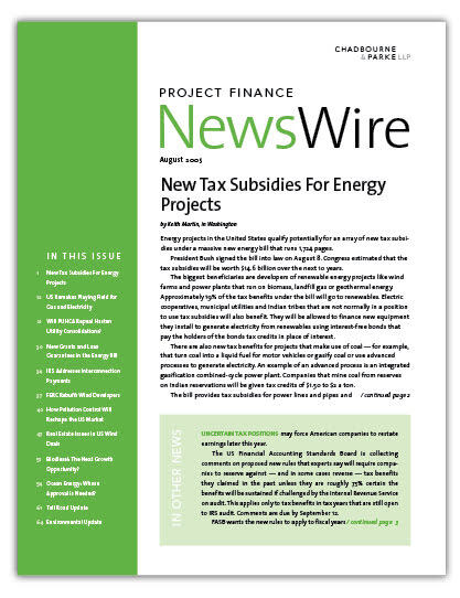 IN THIS ISSUE New Tax Subsidies for Energy Projects Energy projects in the United States qualify potentially for an array of new tax subsidies under a mass
