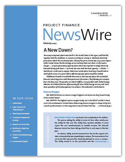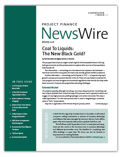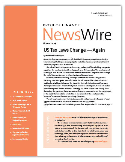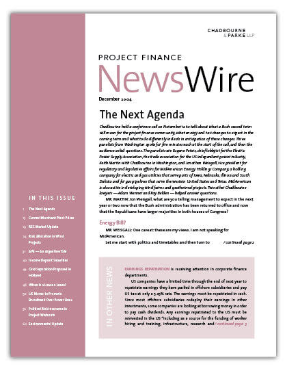 IN THIS ISSUE The Next Agenda Chadbourne held a conference call on November 12 to talk about what a Bush second term will mean for the project finance comm