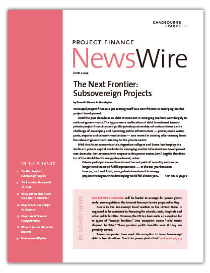IN THIS ISSUE The Next Frontier: Subsovereign Projects Municipal project finance is presenting itself as a new frontier in emerging market project developm