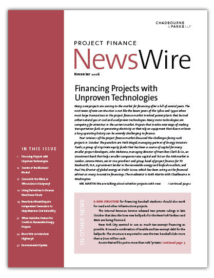 IN THIS ISSUE Financing Projects With Unproven Technologies Many new projects are coming to the market for financing after a lull of several years... Secre