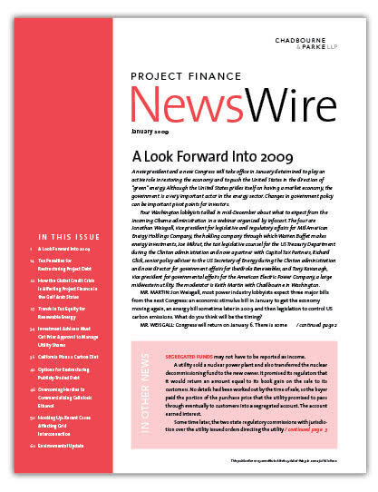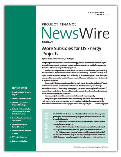 IN THIS ISSUE More Subsidies for US Energy Projects Congress gave developers of US renewable energy projects in late December another year through December