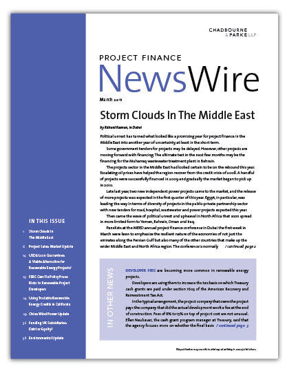 IN THIS ISSUE Storm Clouds In The Middle East Political unrest has turned what looked like a promising year for project finance in the Middle East into ano