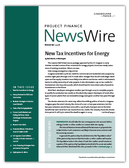 IN THIS ISSUE New Tax Incentives for Energy The massive Wall Street rescue package approved by the US Congress in early October included a series of tax in