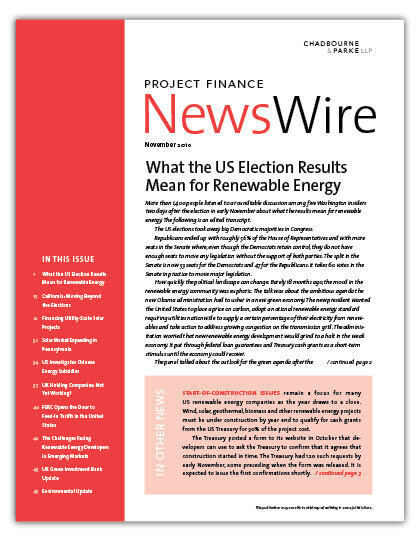 IN THIS ISSUE What the US Election Results Mean for Renewable Energy More than 1,400 people listened to a roundtable discussion among five Washington insid