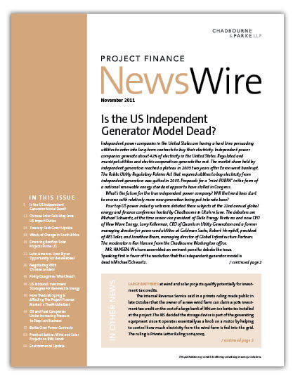 IN THIS ISSUE Is the US Independent Generator Model Dead? Independent power companies in the United States are having a hard time persuading utilities to e