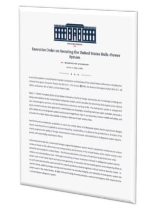 On May 1, President Trump issued an Executive Order banning the use of certain unspecified grid equipment manufactured by foreign adversary countries.